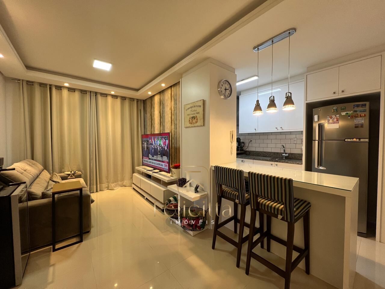 Living integrado a cozinha;