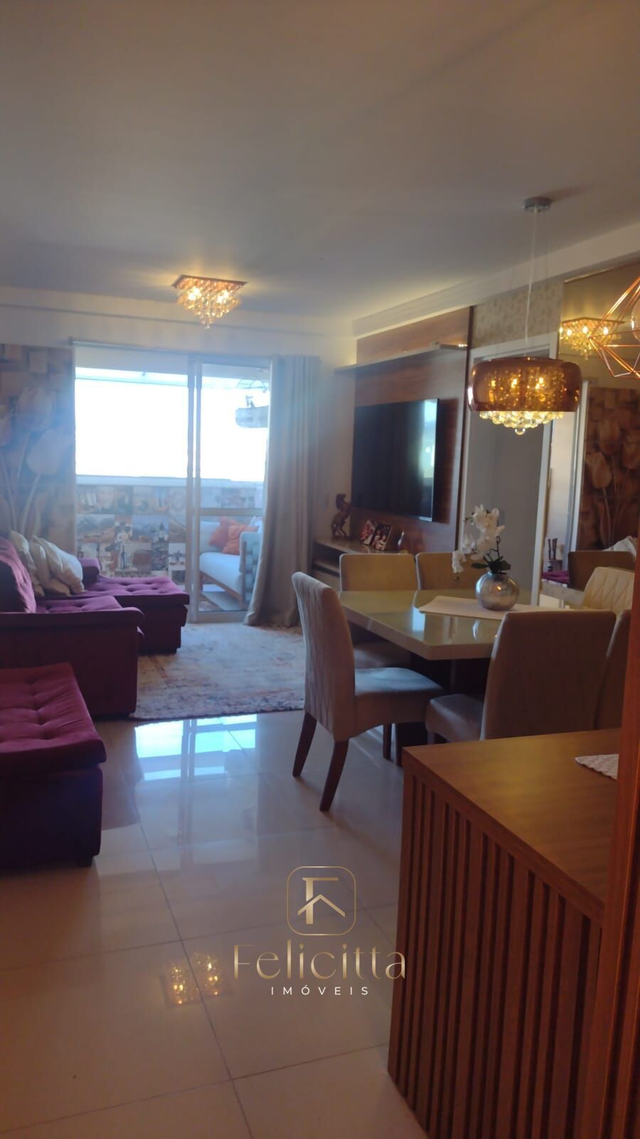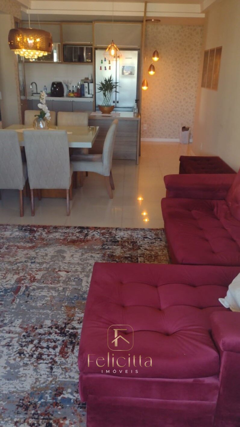 Apartamento de 3 dormitórios sendo um com suíte, sala ampla, cozinha, área de serviço, banheiro social e sacada com churrasqueira. Possui 2 vagas de garagem.