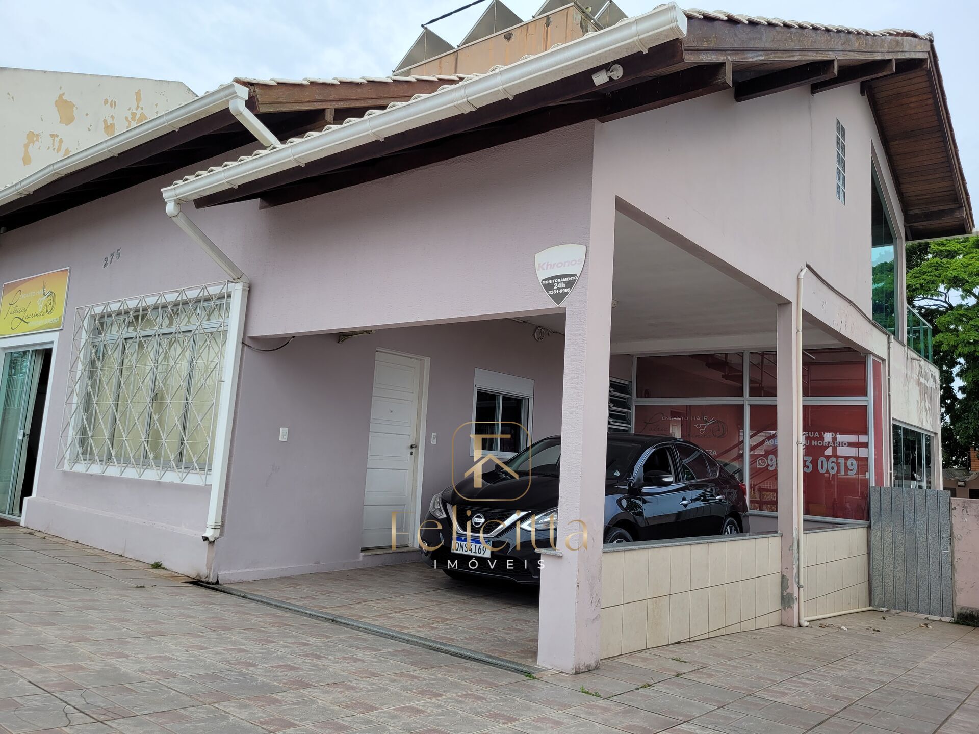 O imóvel possui portão eletrônico, amplo quintal e jardins.