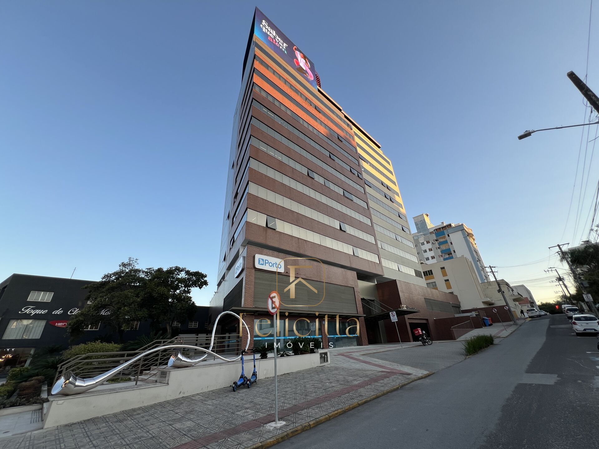 Localizada no bairro Estreito, em Florianópolis, a sala está próxima a comércios, bancos, restaurantes e com fácil acesso às principais vias, incluindo a Ponte Colombo Salles e o Centro da Capital.